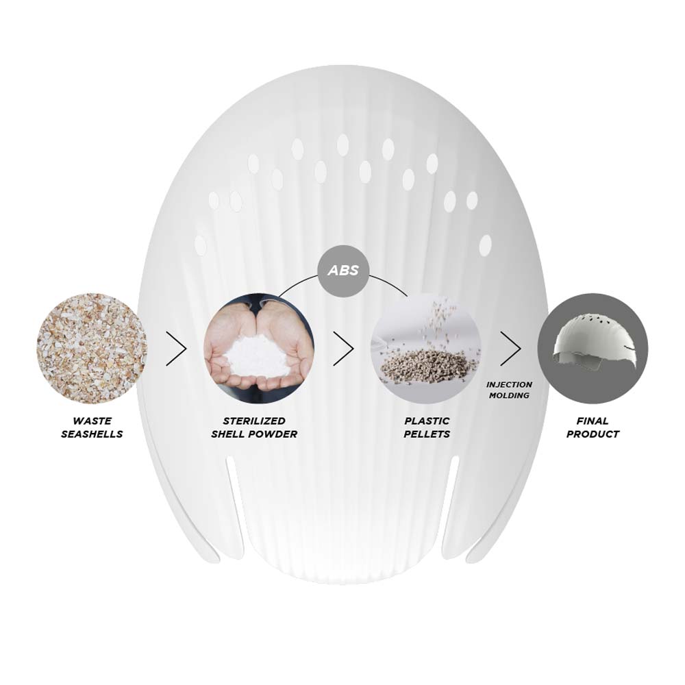 • Flexible Bump Shell inspired by nature – biomimicry : shape and powder-filled form of scallop shells, which have exceptional strength-to-weight characteristics