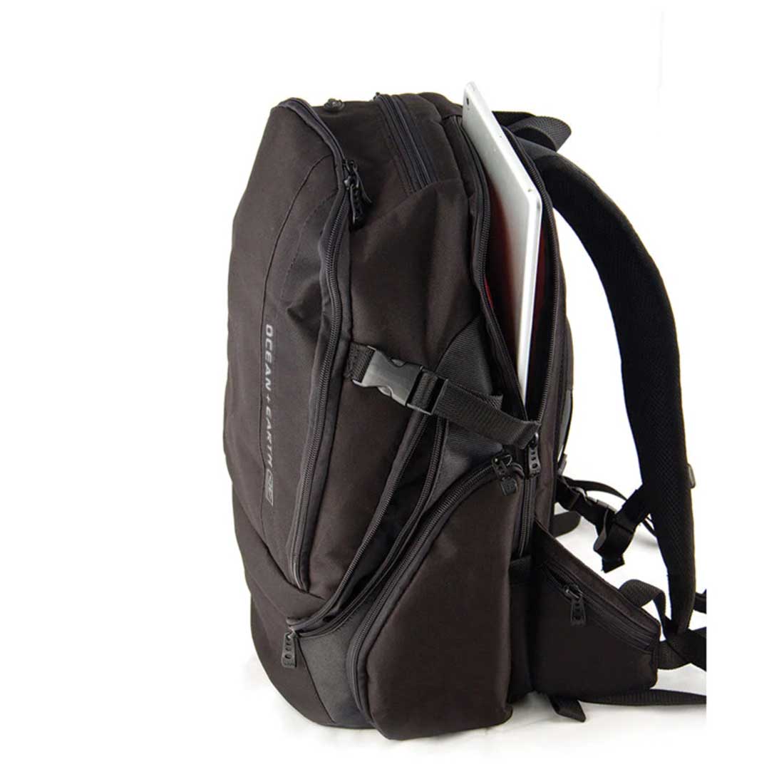 Ocean & Earth Interceptor Backpack – 38 liters / Black – An Airline-friendly travel pack for skateboarders and active people.