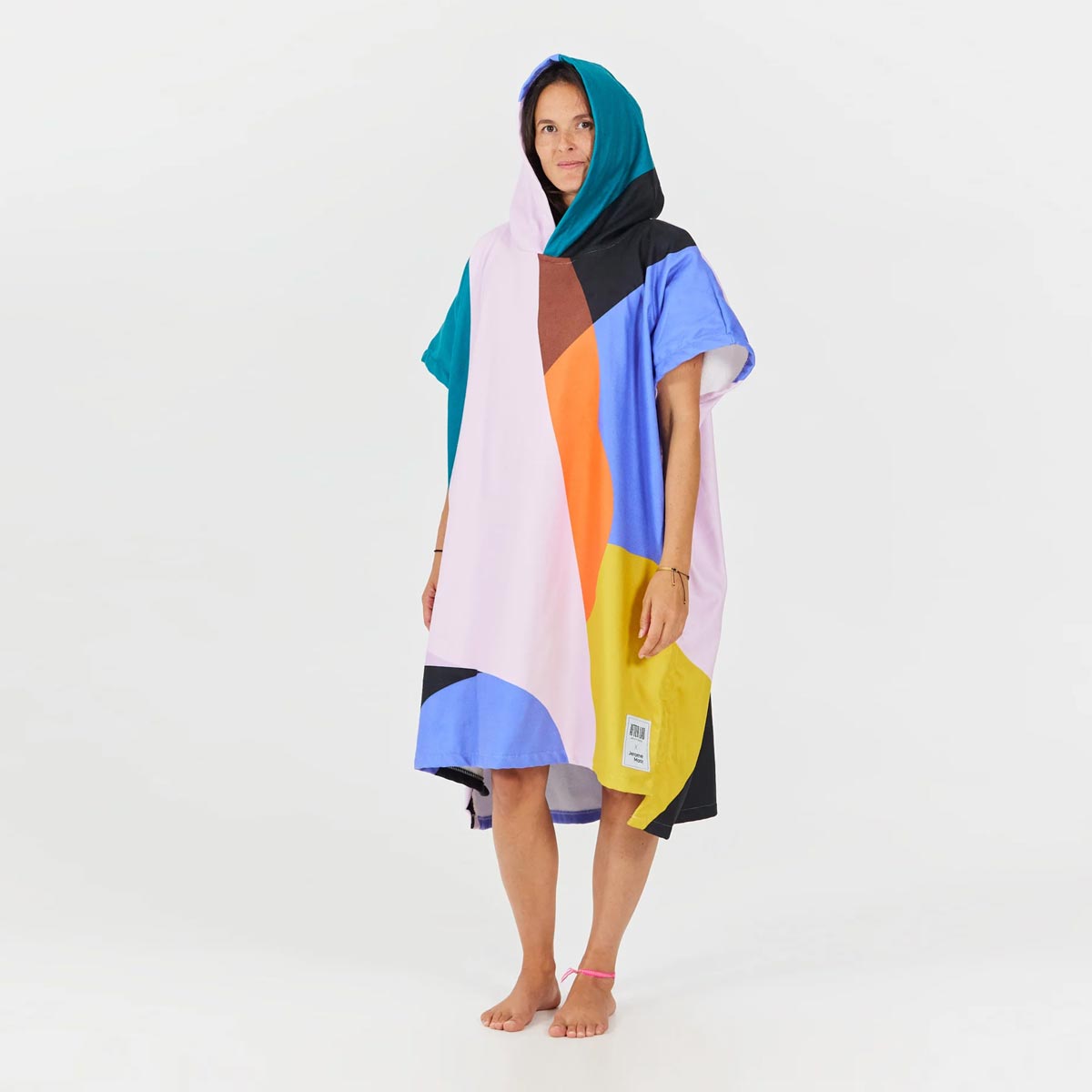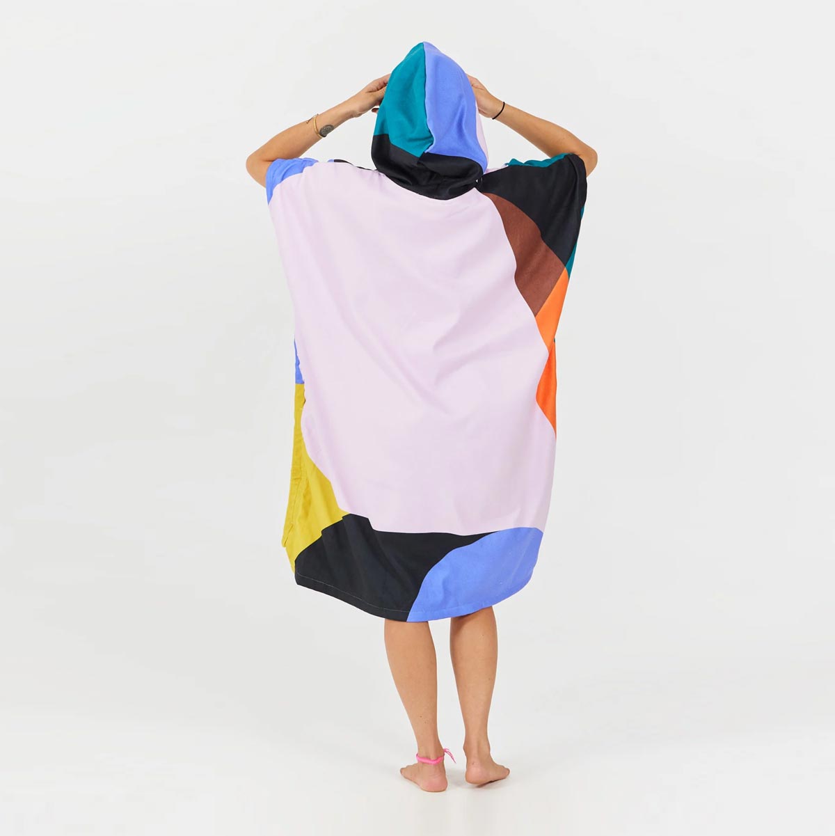 For his collaboration Poncho, Jérôme explored abstract yet highly distinctive color blocking, bringing a true urban vibe to the beach poncho.