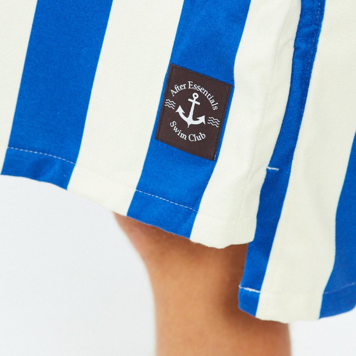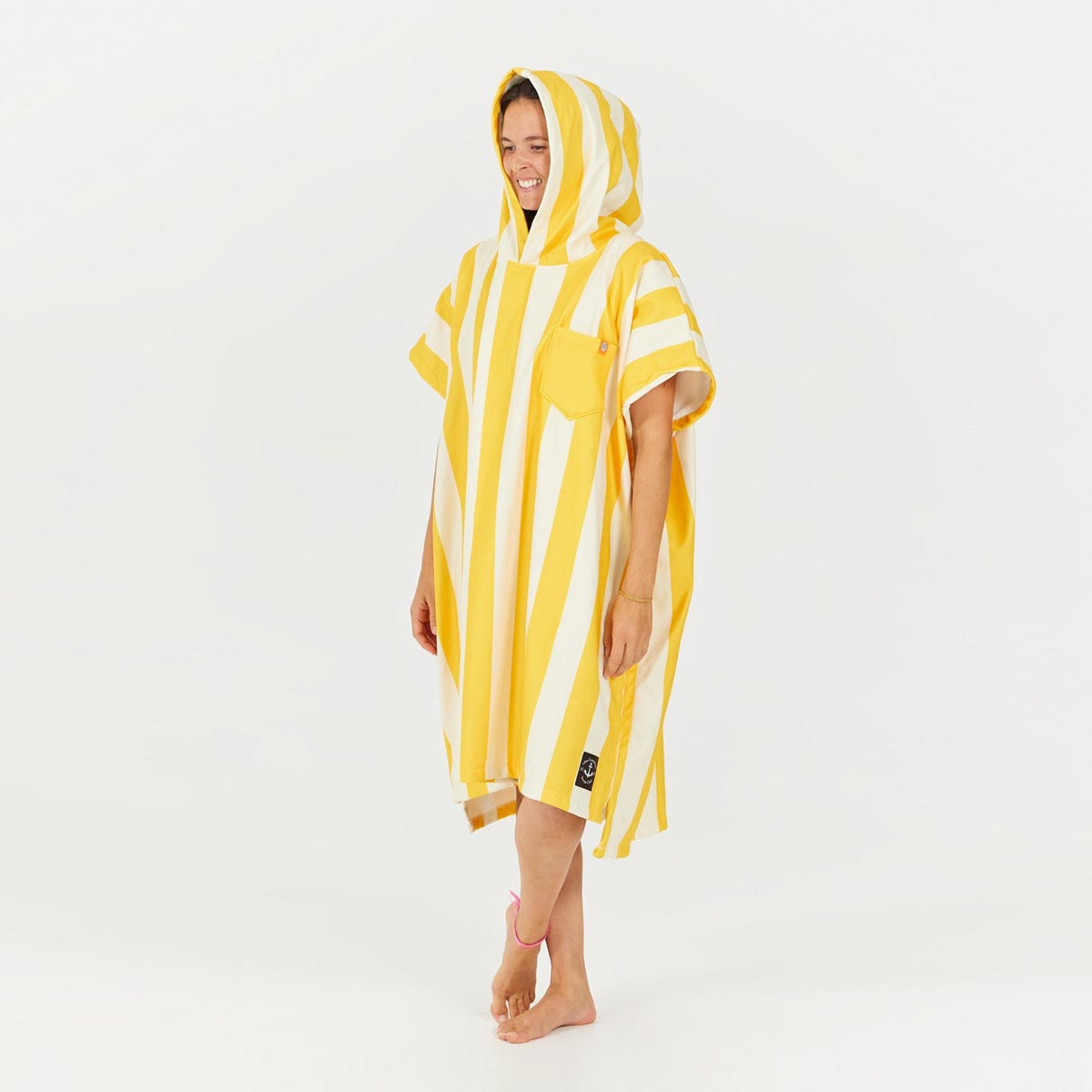 The Stripes Poncho brings color to your days at the beach or pool. Inspired by the vintage style of 1950s swim clubs, it combines comfort, elegance, and fun in a single garment. Made from premium terry fabric (100% cotton interior, 100% polyester exterior), it dries quickly and provides immediate comfort after swimming. Its loose fit, integrated hood, and chest pocket with keycord make it a practical and stylish companion to fully enjoy the sun and the water.